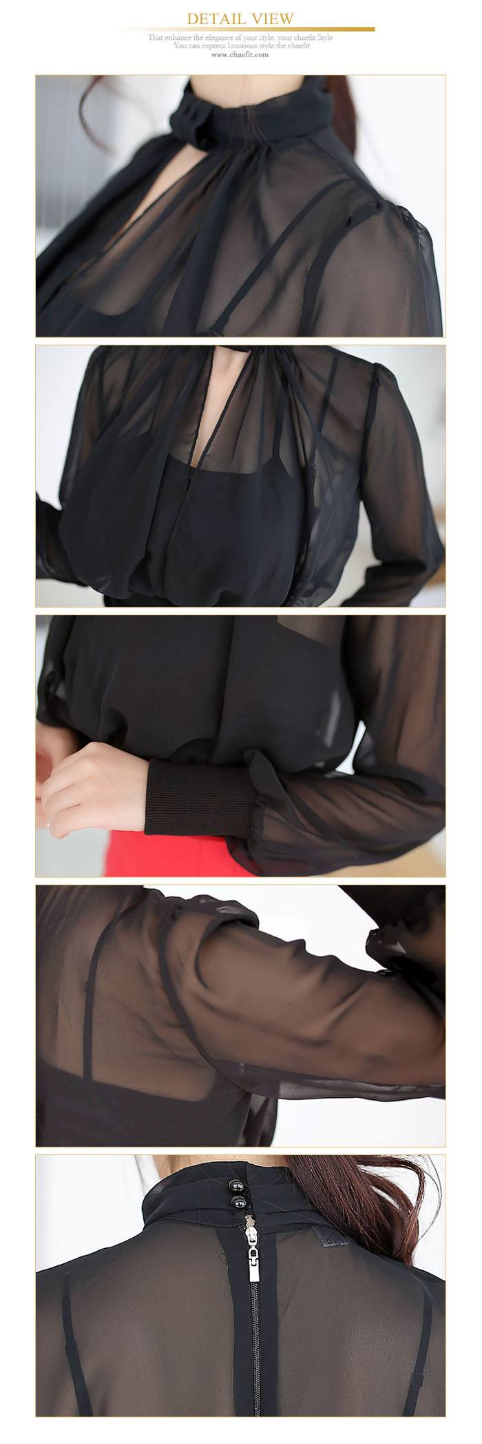 特色性感立領(lǐng)雪紡衫 泡泡袖細節(jié)