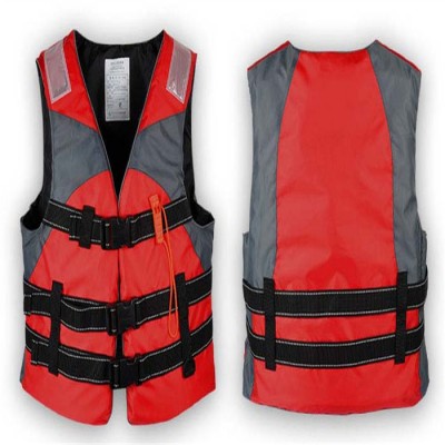 救生衣( life jacket)又稱救生背心,是一種救護(hù)生命的服裝,設(shè)計(jì)類(lèi)似背心,采用尼龍面料或氯丁橡膠(NEOPRENE),浮力材料或可充氣的材料,反光材料等制作而成。一般使用年限為5-7年,是船上、飛機(jī)上的救生設(shè)備之一。一般為背心式,用泡沫塑料或軟木等制成。穿在身上具有足夠浮力,使落水者頭部能露出水面