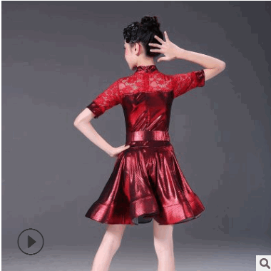 新款女童拉丁舞裙兒童練功服比賽演出服裝女孩少兒舞蹈規定服夏季