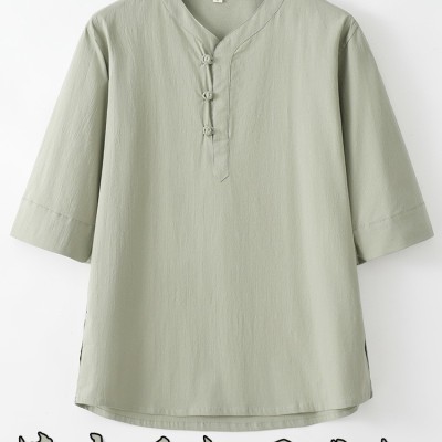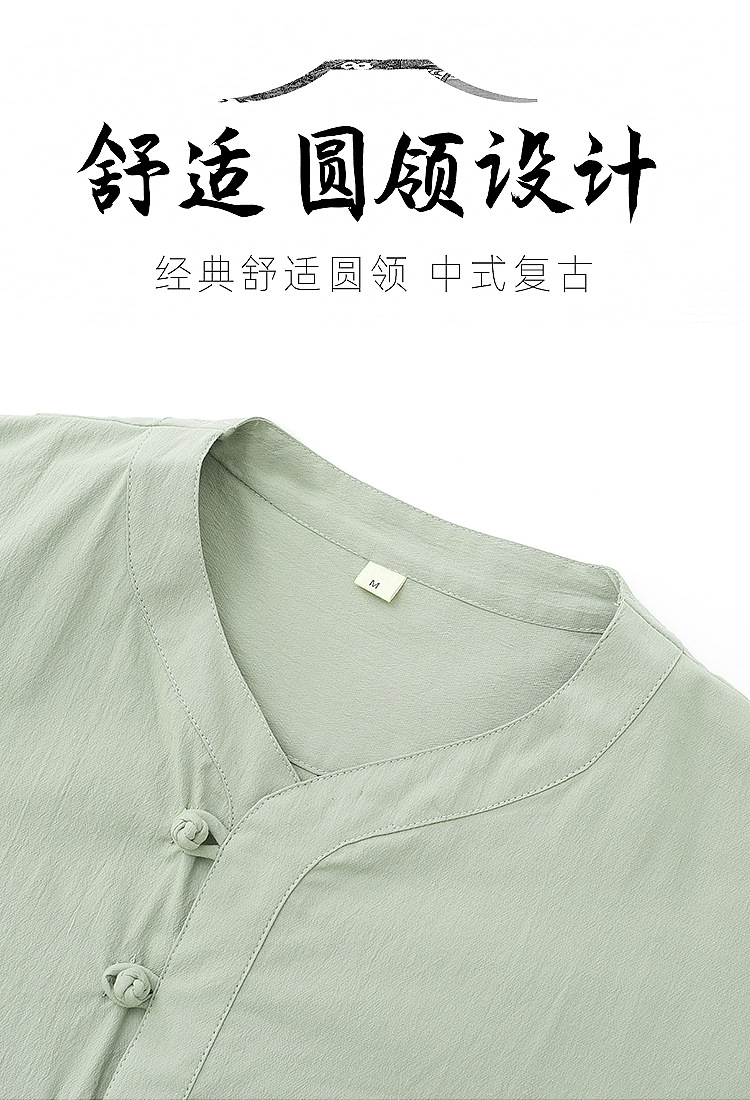 唐裝男款夏季短袖t恤潮牌薄款五分袖潮流男彈力棉麻半袖中式男裝