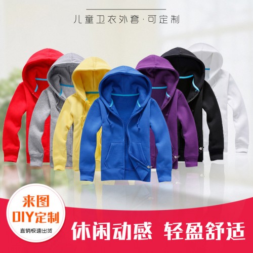 定制 男童開衫連帽衛衣定制logo定做女童刺繡印花長袖棒球服秋外套班服