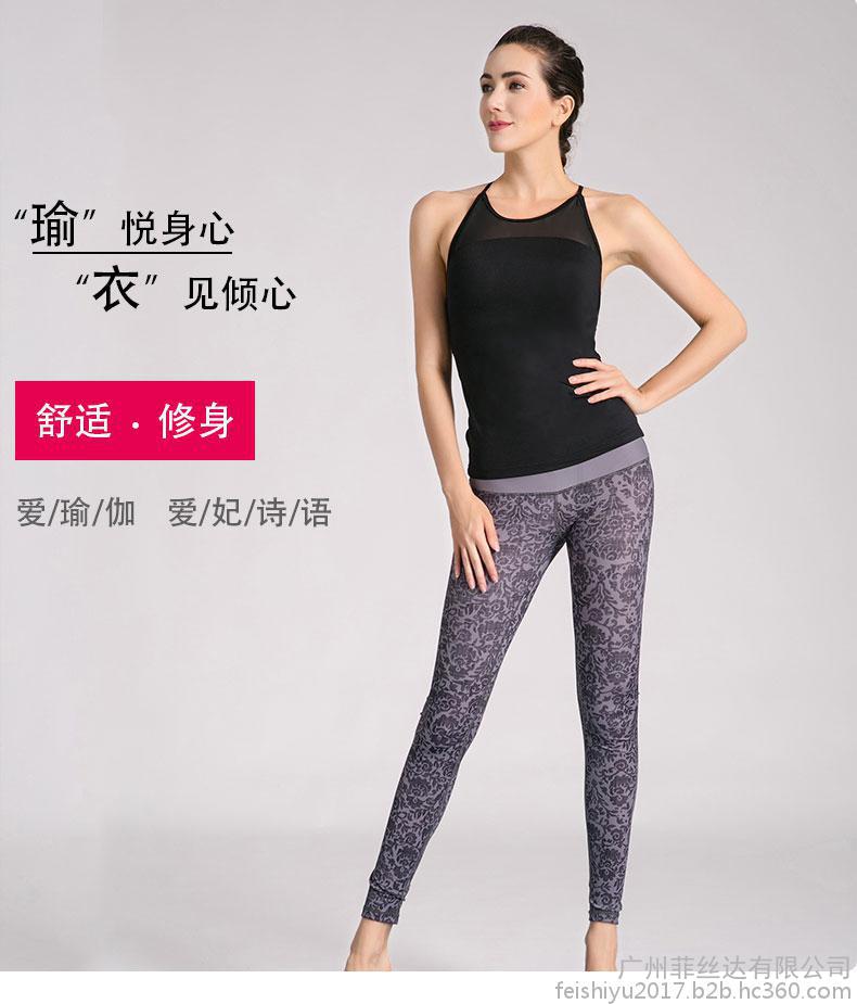 F3011 瑜伽背心瑜伽服套裝 妃詩語春夏季女顯瘦修身健身房運動跑步印花瑜珈服