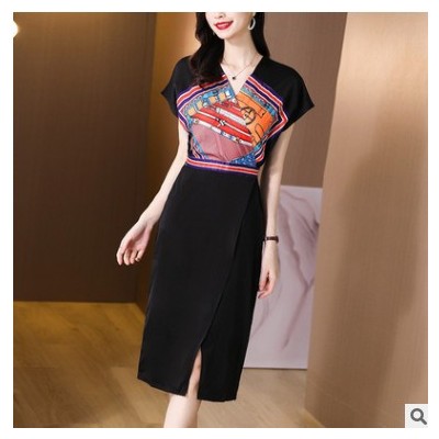 2021年新款夏季網紅御姐輕熟風炸街裙子收腰顯瘦開叉v領連衣裙女