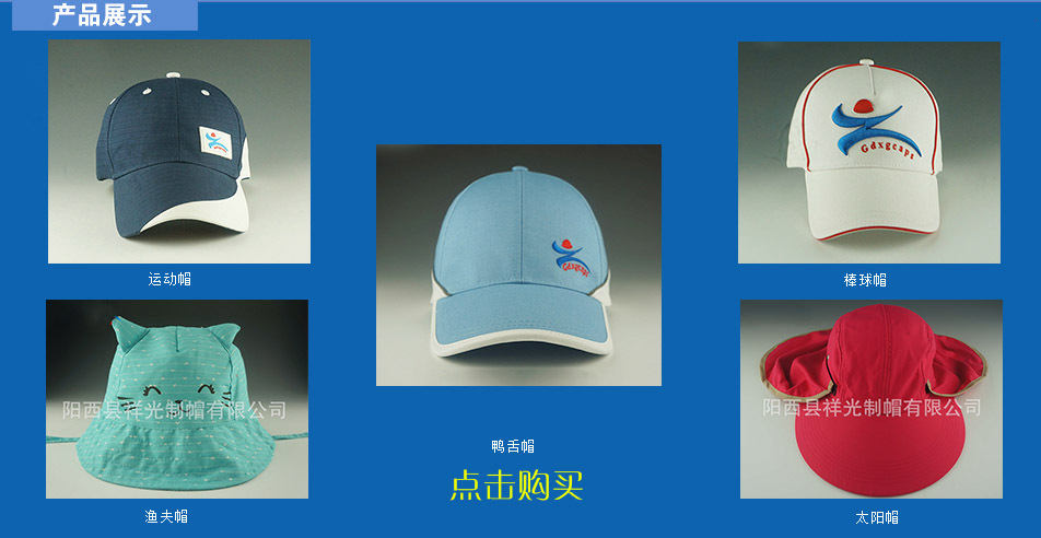 | 2.帽子系列:運動帽、棒球帽、競賽帽、可調節帽、兒童帽、新款帽、 | ||||