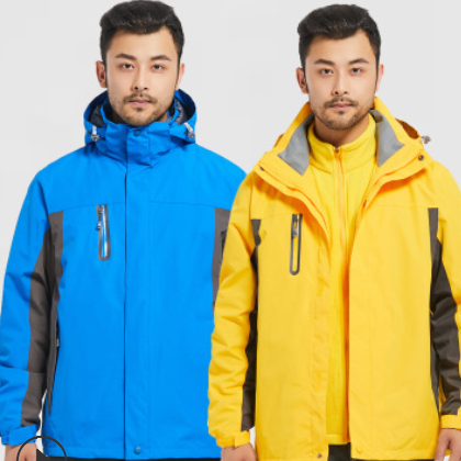 新款戶外登山滑雪運(yùn)動(dòng)服兩件套男加絨保暖三合一沖鋒衣定制工作服