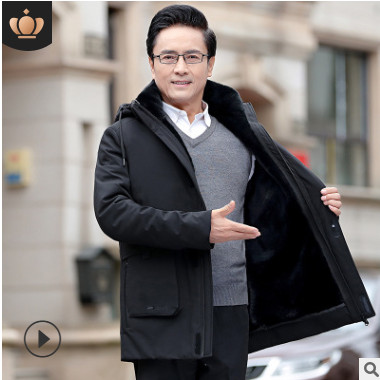 19爸爸冬裝外套加絨加厚中年男士棉衣中老年雙層可脫卸中長(zhǎng)款棉襖