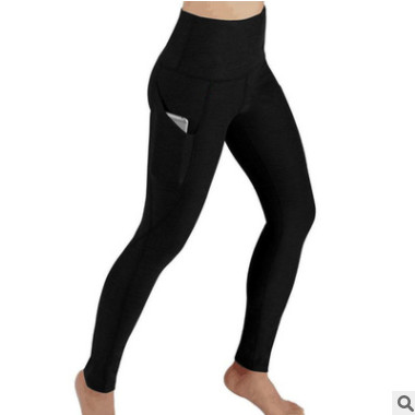 亞馬遜跨境運動健身服緊身褲女彈力高腰收腹提臀瑜伽褲側(cè)口袋爆款