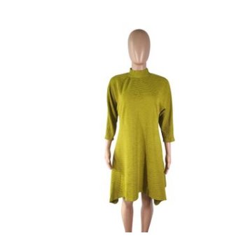N9190 跨境專供 2020春季新款歐美時尚七分袖寬松褶皺純色連衣裙