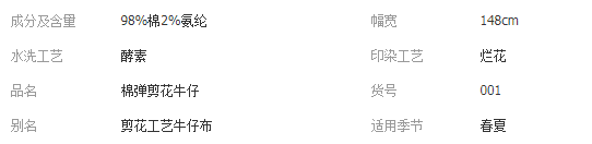 廠家直銷 新款 全棉彈力剪花牛仔面料 爛花牛仔布 現(xiàn)貨供應(yīng)