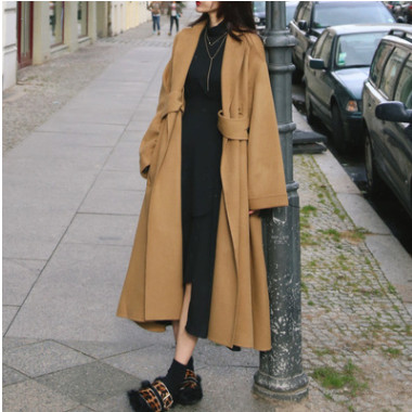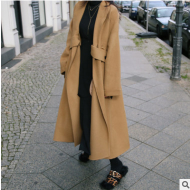 2018年新款長款寬松大擺個(gè)性時(shí)尚手縫雙面呢大衣駝色黑色白色