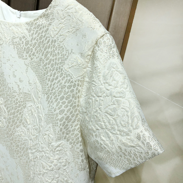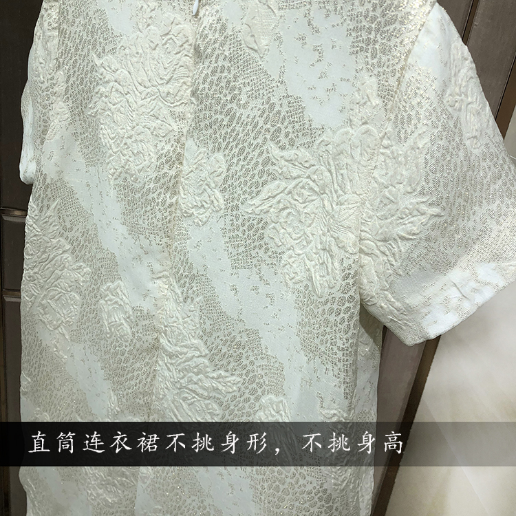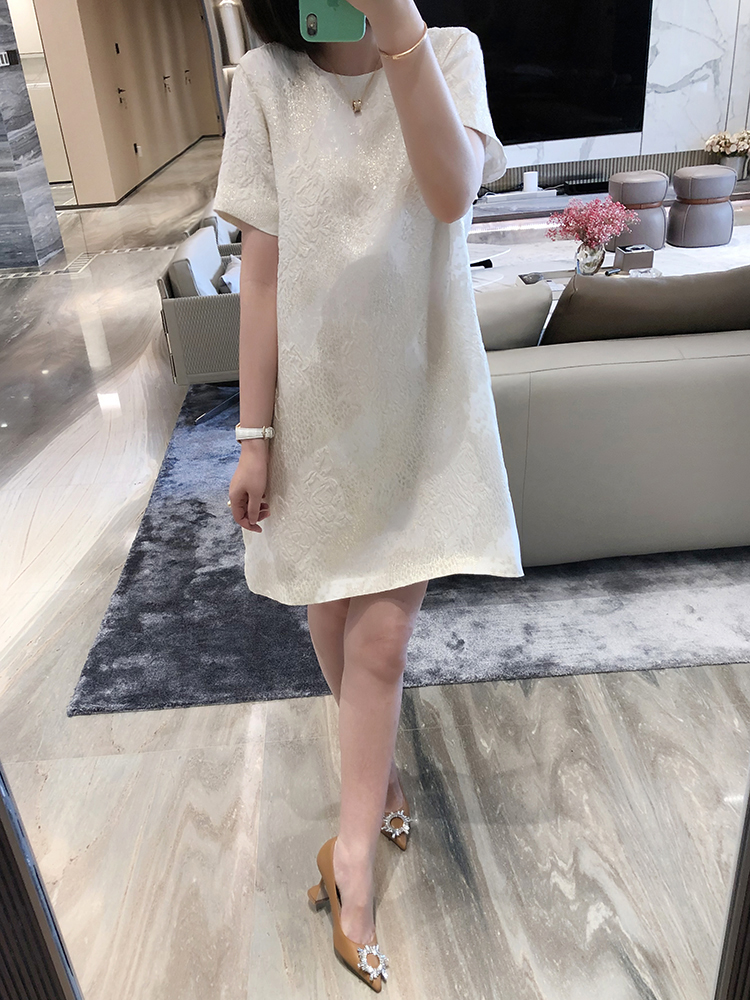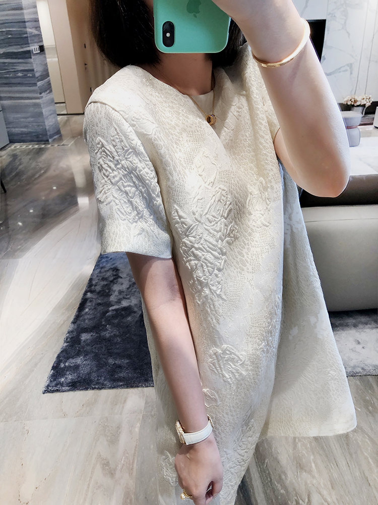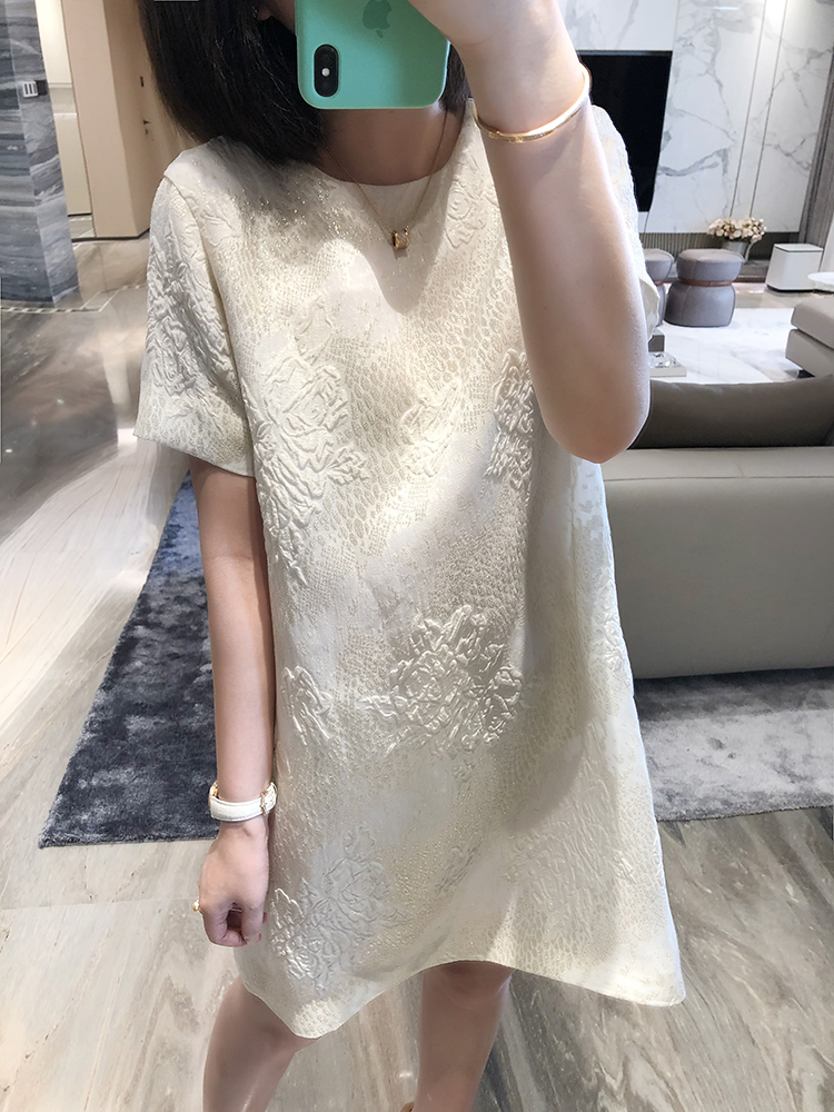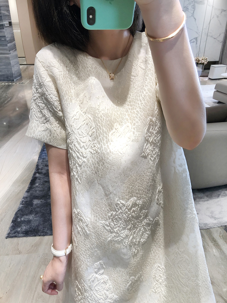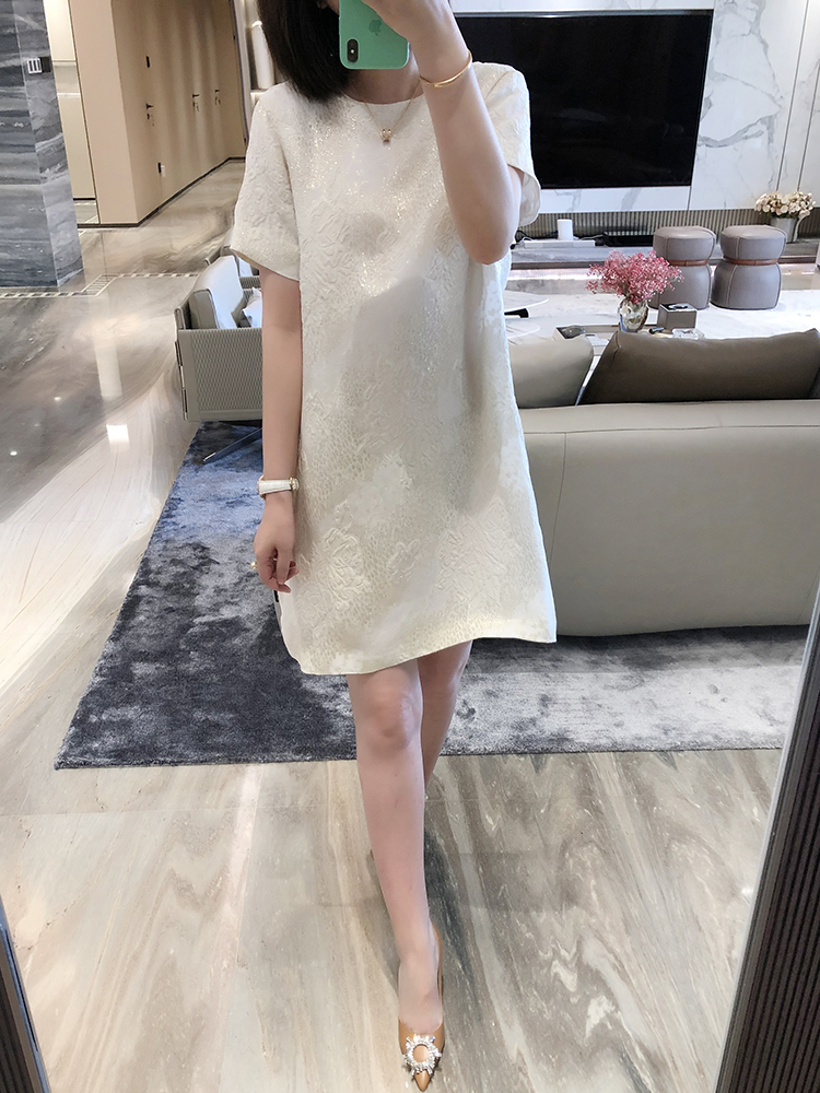 寵愛無名 定制提花真絲連衣裙女2020新款短袖白色裙子洋氣女裙