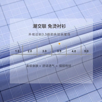 新款男式純棉方領長袖襯衣抗皺易打理修身格子襯衫潮交聯免燙襯衫