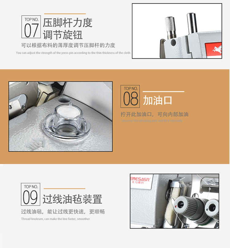 700包縫機系列產品,、。它應用于針織服裝、內衣、T恤衫、絲綢、化纖的接頭包縫、包邊等多樣縫紉性能,適于針織內、外衣厚料縫制,即使是縫制也能的線跡,配備節音直驅電機,節能、環保、 注:產品為公司實物拍攝, 共0條 相關評論 |
