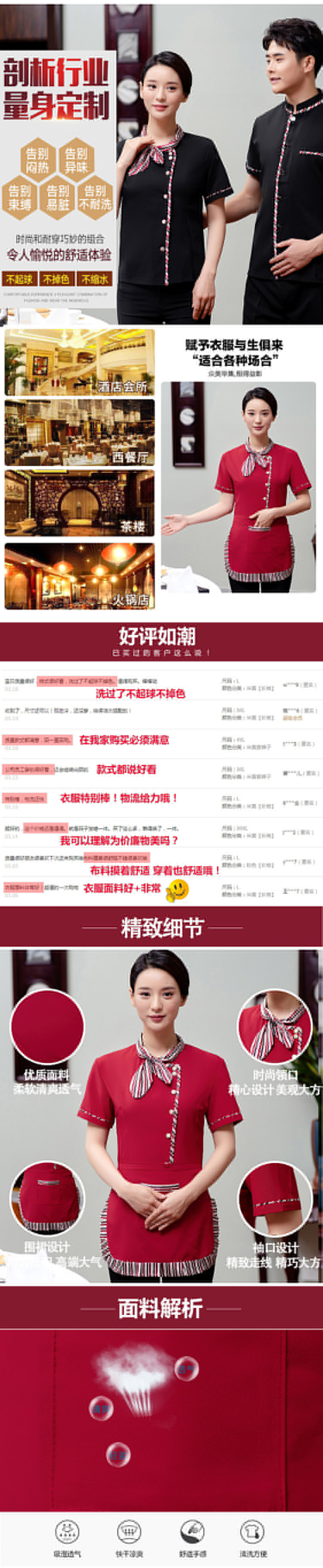 服務員工作服男女中餐廳酒店飯店快餐店火鍋店奶茶店餐飲短袖夏季