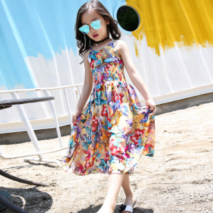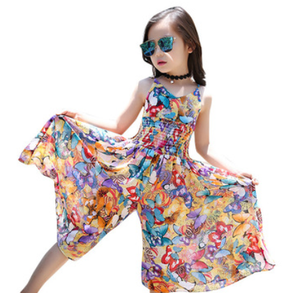 20新款波西米亞風兒童吊帶裙女童夏裝碎花闊腿褲個性連體褲連衣裙