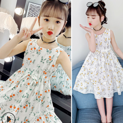 女童連衣裙2020新款夏季純棉連衣裙碎花背心長裙休閑收腰簡約裙子