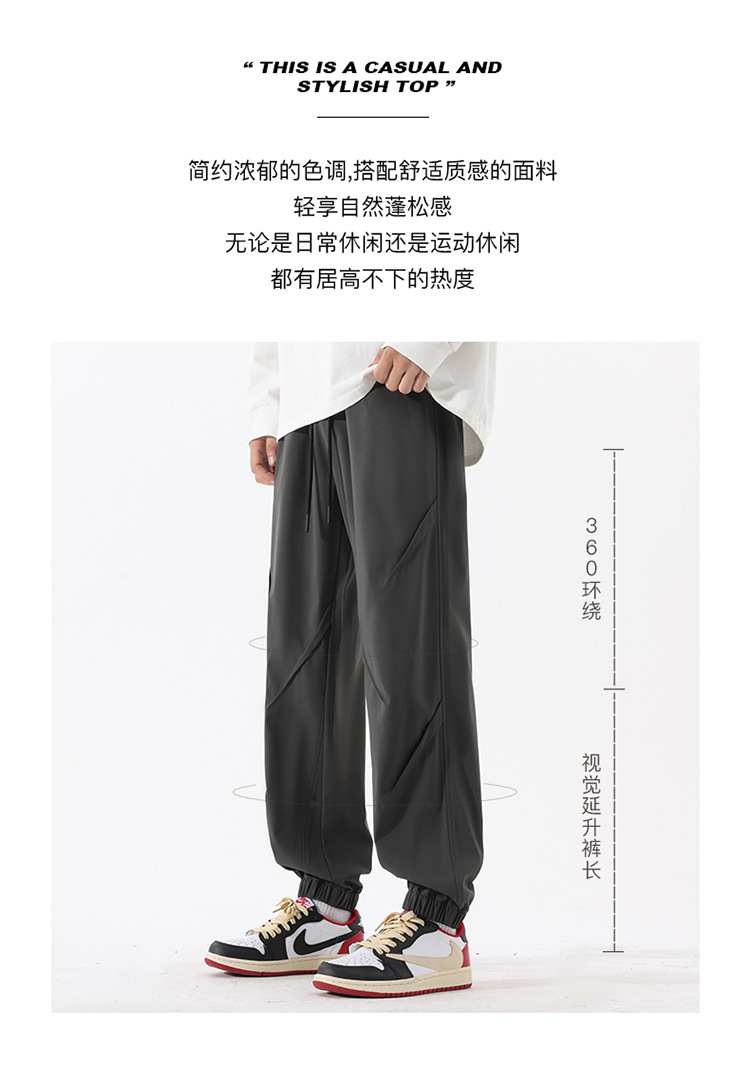褶皺休閑褲男春秋新款設計感情侶傘兵工裝褲寬松束腳運動休閑長褲