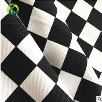 廠家直銷 TC廚師服黑白格 棋盤格子布 廚師服印花面料 防火花