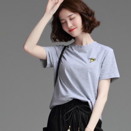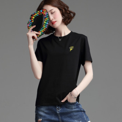 夏季棉質短袖t恤女寬松ins洋氣圓領體恤衫韓版刺繡百搭短袖上衣女
