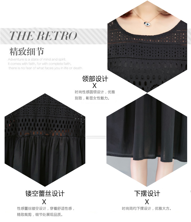 2018外貿夏季新款胖mm時尚顯瘦大碼女裝拼接鏤空連衣裙寬松孕婦裝
