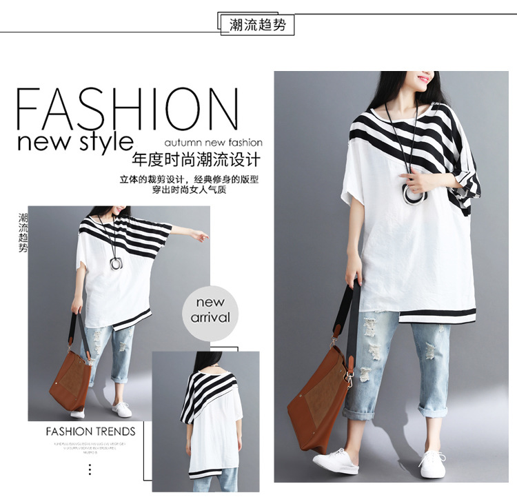 胖mm 大碼女裝2018夏季新款寬松蝙蝠衫棉麻t恤女士中長款休閑上衣