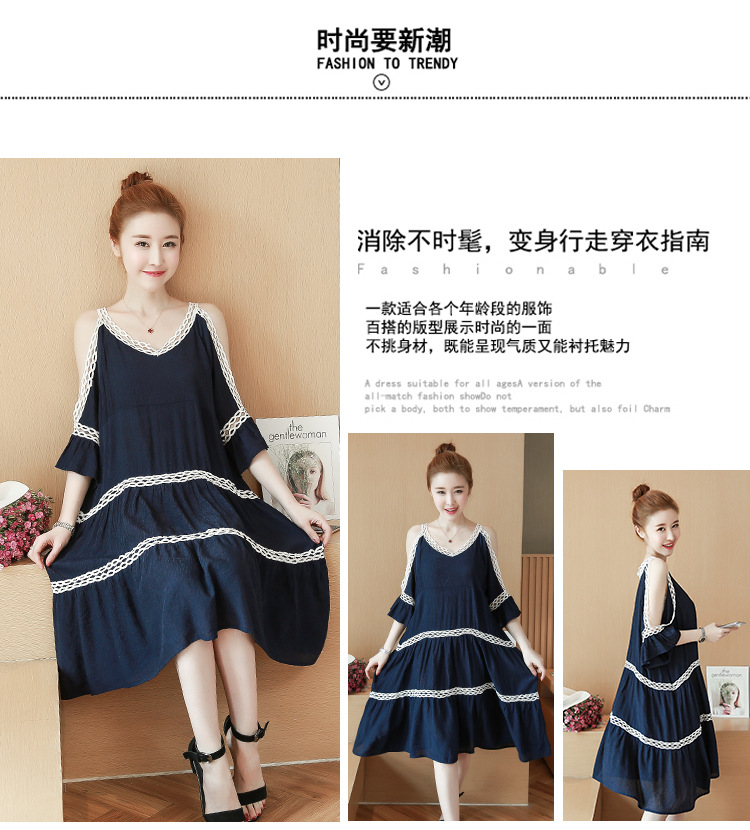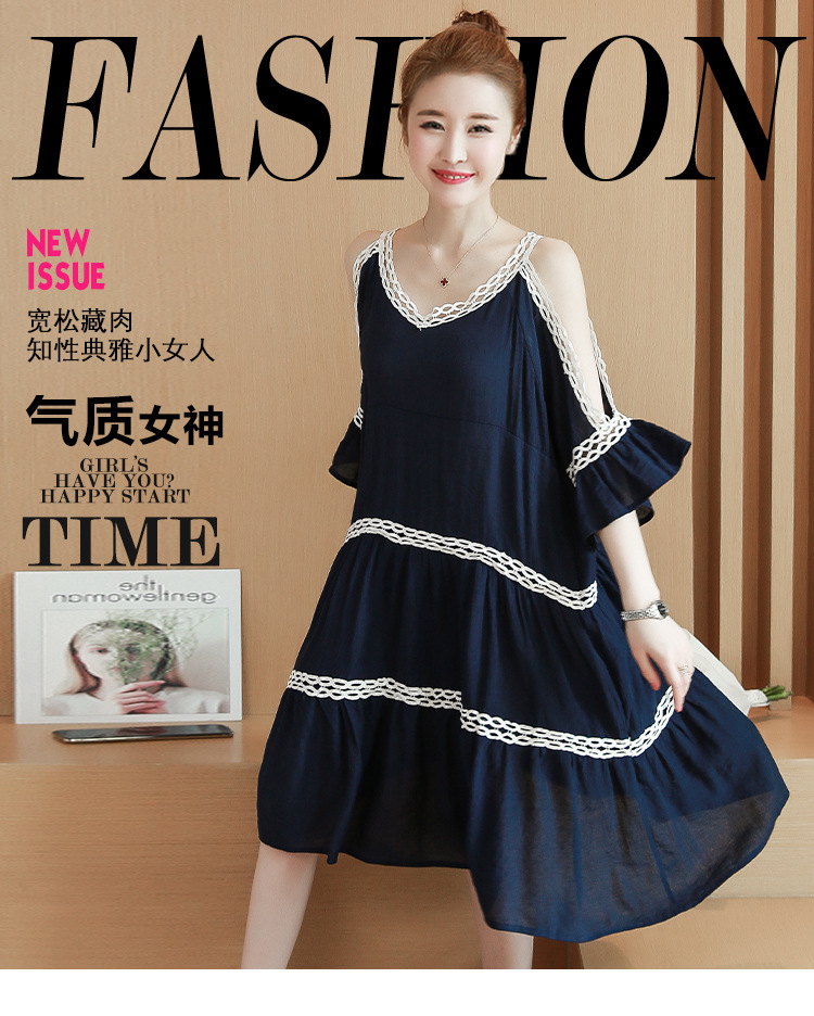 2018夏季新款韓版外貿女裝胖mm大碼寬松性感露肩拼接連衣裙孕婦裝