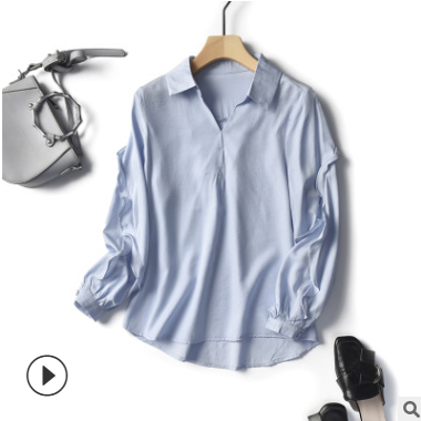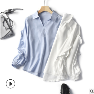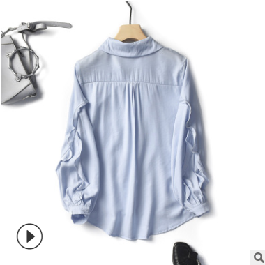【折紙】2019秋季新款韓版荷葉袖襯衫女長袖氣質仿真絲翻領襯衣女