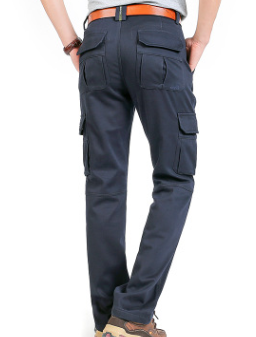 跨境加厚大碼男褲純棉加絨休閑褲中腰直筒男士長褲多袋工裝褲男