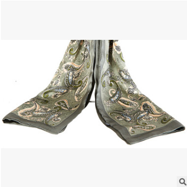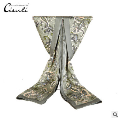 100%桑蠶絲綢緞男士商務圍巾真絲雙面窄長巾26X160灰綠色現貨