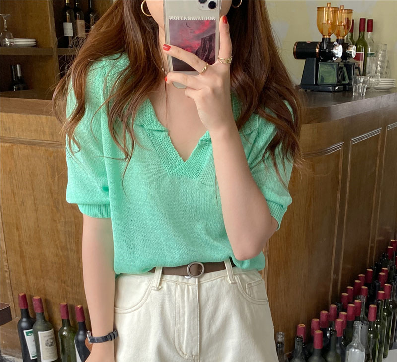 廠家批發針織短袖T恤女薄款夏季2021新款潮設計感寬松短款上衣服