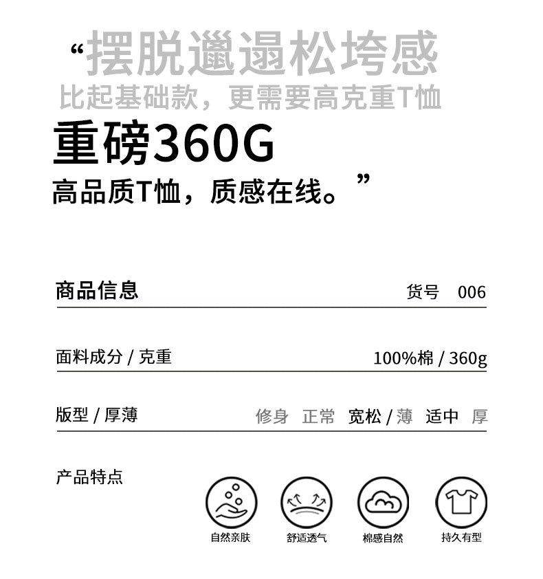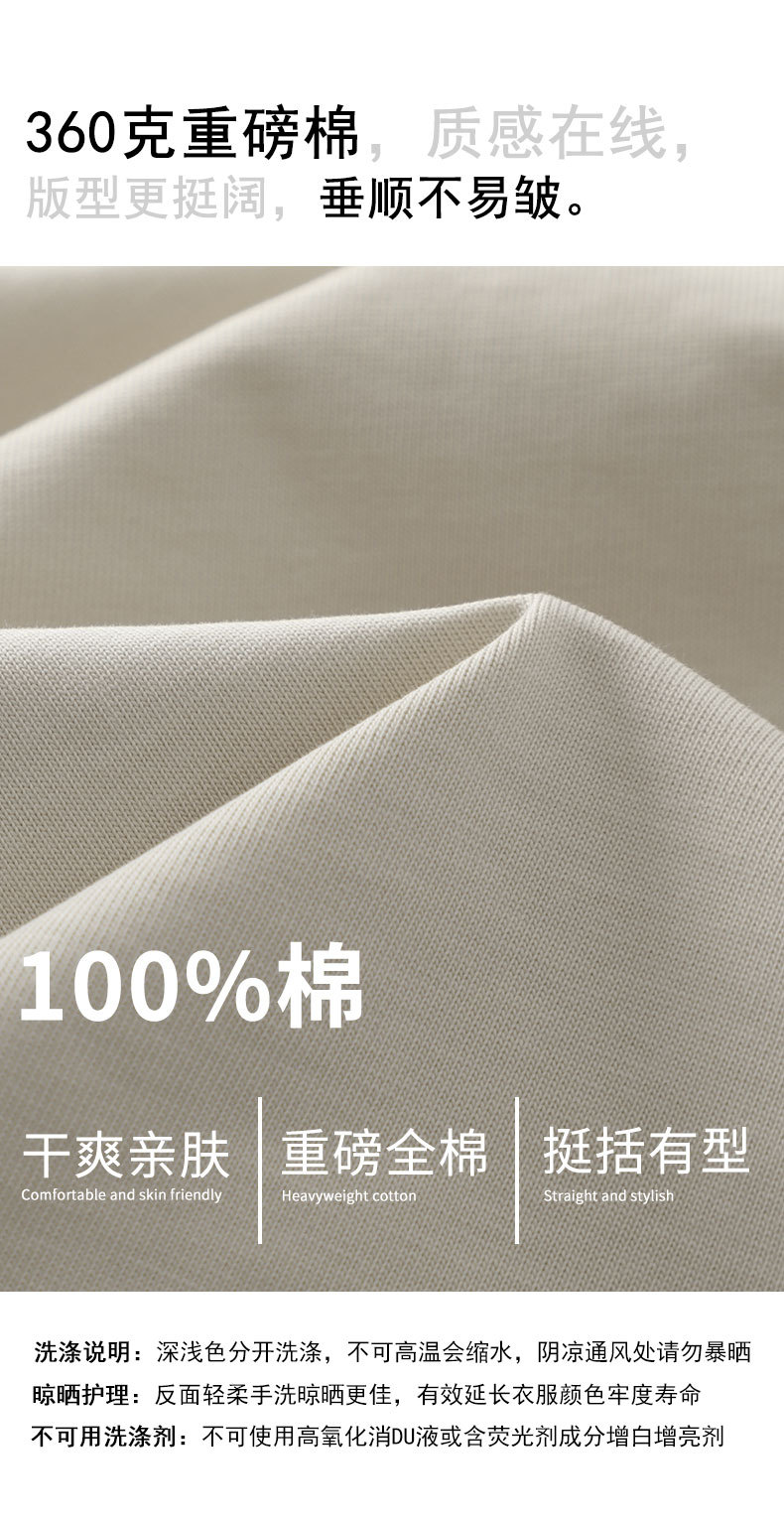 大碼美版360g重磅小領口純色T恤2024春夏新高品質oversize五分袖