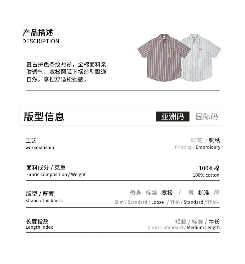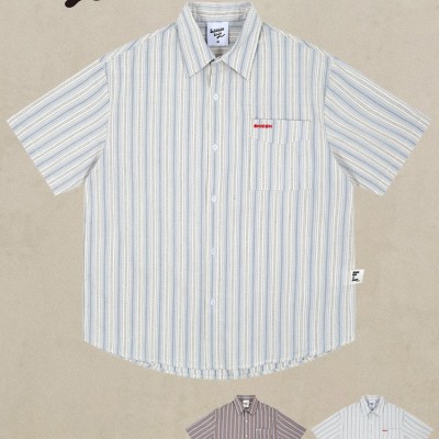日系復古豎條紋襯衫男女夏季短袖休閑百搭高品質純棉情侶襯衣薄款