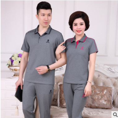 夏季中老年情侶運動服套裝男中年人夏天跑步休閑衣運動服裝女套裝
