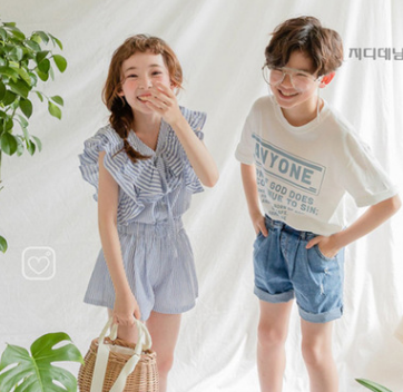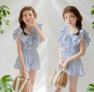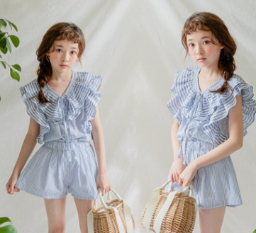 女童中大童夏款棉花邊領上衣褲子套裝女寶夏季套裝寶寶2件套