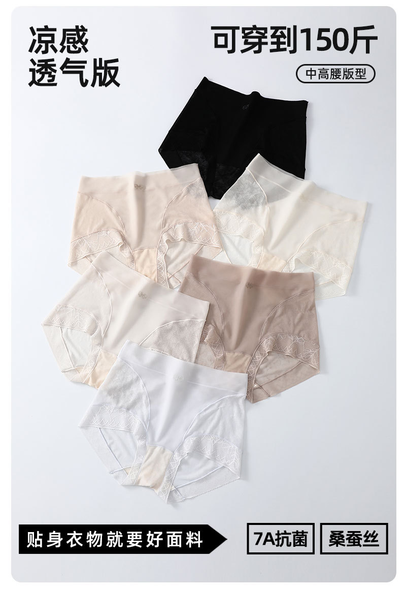 夏季新款蕾絲女內褲韓版性感冰絲無痕內褲a桑蠶絲中腰女士三角褲