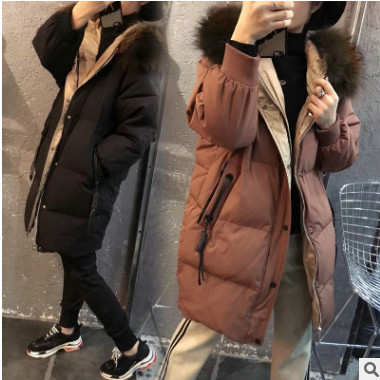 歐洲站冬裝2018新款歐貨時尚拼色毛領連帽加厚羽絨服女中長款潮RQ