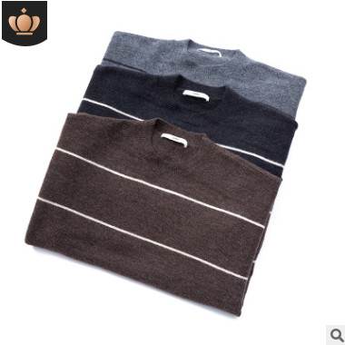 2019秋冬條紋針織衫男 韓版圓領套頭百搭男士毛衣 青年上衣男