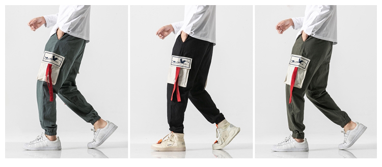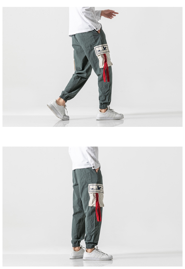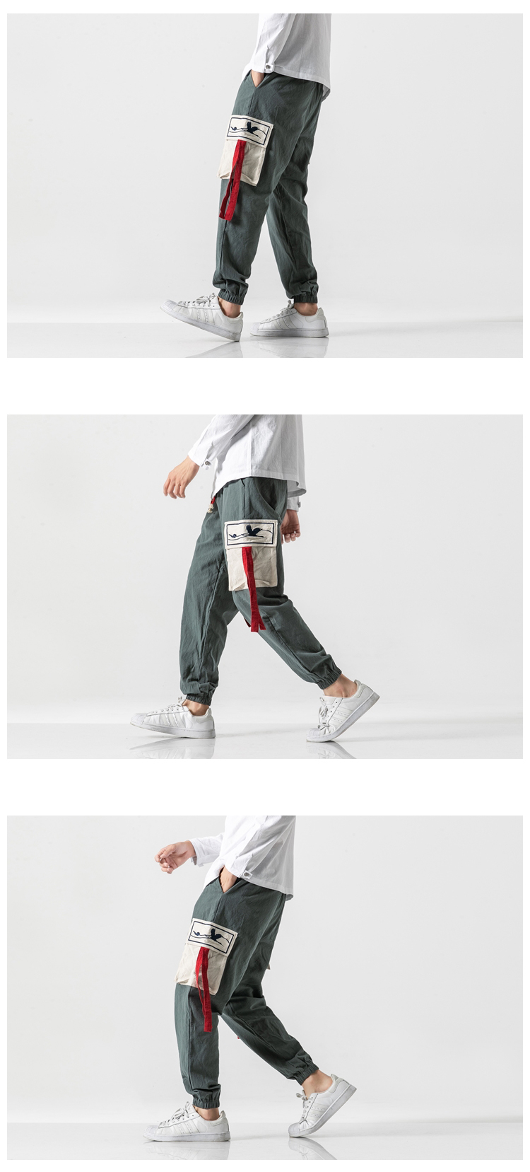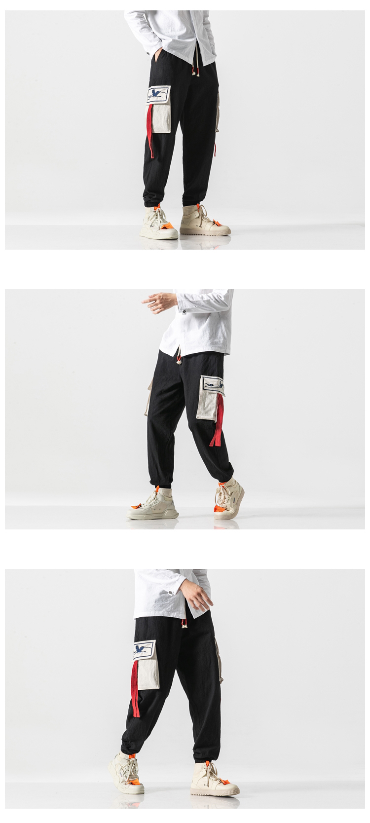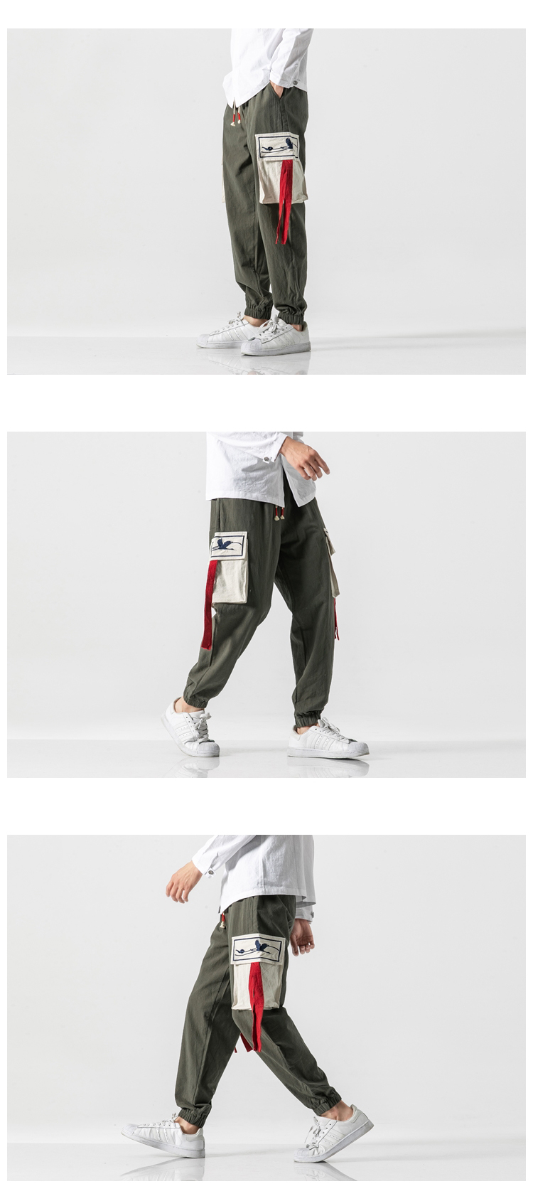 2019秋冬棉麻工裝褲飄帶刺繡國潮時尚日系百搭長褲寬松大口袋小腳