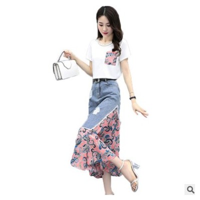 夏天牛仔連衣裙兩件套2021年夏季新款女裝氣質顯瘦裙子長裙套裝潮