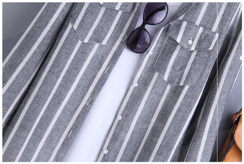 春夏韓版長(zhǎng)款棉麻豎條紋 寬松襯衫襯衣 女 防曬韓版休閑上衣
