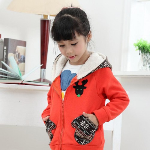 2014秋冬新款抓絨卡通小鹿圖案羊羔絨連帽衛(wèi)衣外套