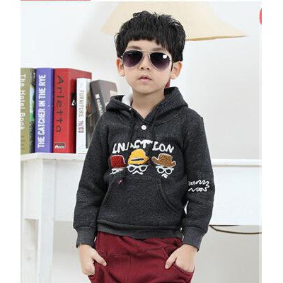 2014秋冬新款卡通撞色圖案抓絨連帽套頭衛(wèi)衣