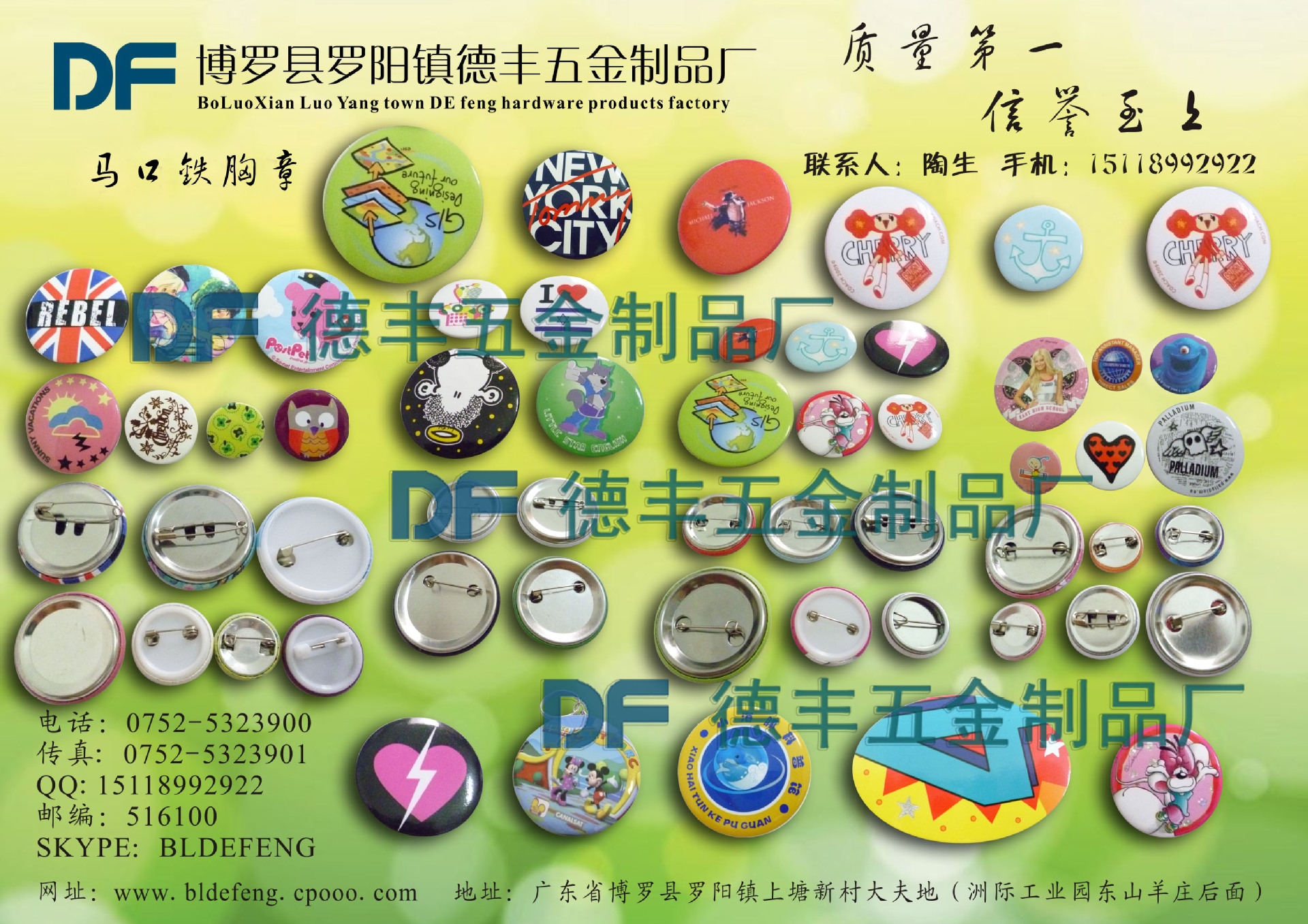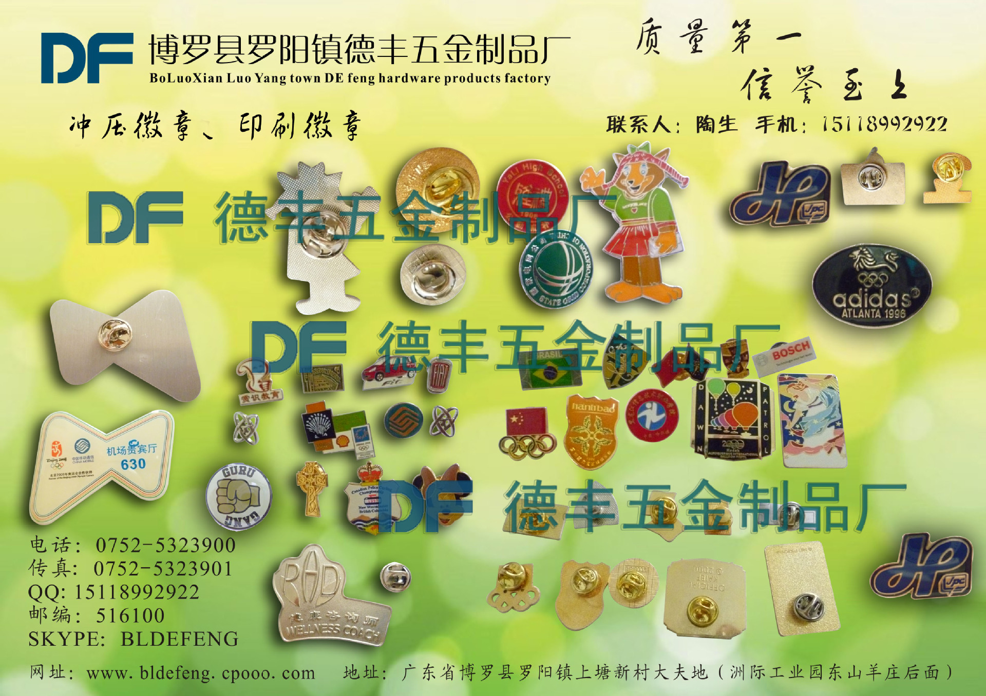 德豐五金制品廠工藝介紹:具體工藝可分為:沖壓,液壓,電鍍,烤漆,琺瑯,印刷,貼紙滴塑,腐蝕,等等.沖壓涉及銅、鐵、鋁沖壓;鋅合金、錫合金、鋁合金壓鑄;腐蝕涉及銅、不銹鋼、鋁腐蝕或鏤空;沖壓出來的產品圖案花紋清晰,飽滿,立體浮雕效果強。電鍍表面完整,細致,均勻,色相,光澤一致,沒有明顯的粗糙,起泡,燒焦,裂紋,劃痕,脫層等電鍍缺陷。填漆部位到位不漏底,經過工人手工拋光以后,去掉了產品邊緣的毛刺,填漆出來的產品表面光滑沒有劃橫,氣泡,污陷,邊緣規整,光滑,沒有毛刺。以上產品可以根據客戶的要求制作不同的形狀,logo,可電鍍仿金,鍍鎳,鍍銀,鍍真金,鍍銅,鍍青銅,鍍黃銅。根據不同的用途對產品的顏色跟圖案進行更改,做到讓客戶放心,消費者滿意。德豐五金會尊重每個客戶提出的要求,采納每個客戶提出的建議跟意見,積極進行改進跟創新,客戶的建議跟意見**是我們寶貴的財富,我們真誠的希望能夠跟每一個客戶建立起良好的合作關系。德豐五金主要產品有