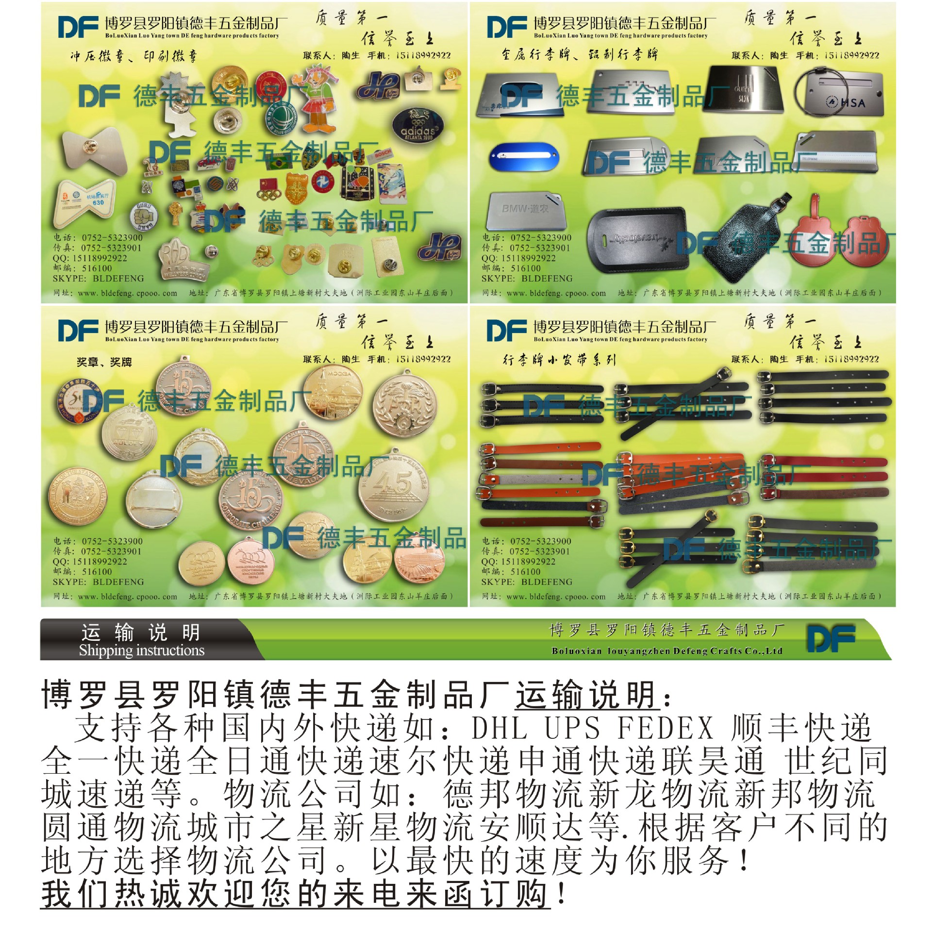 1) 產品名稱: 金屬徽章2) 材質:  鋅合金、銅、鐵3) 制作工藝: 硬琺瑯、軟琺瑯、景泰藍,烤漆、腐蝕、印刷、滴油 滴塑、光面、激光、鐳射等4) 電鍍:金,古金,霧金,銀,古銀,霧銀,紅銅,古紅銅,鎳,黑鎳,霧鎳,青銅,古青銅,鉻,代銠5) **小訂購量1000PCS6) 包裝:1pc/polybag、禮品盒 可根據客人要求包裝7) 出貨方式: 聯邦、DHL,汽車運輸,其他運輸方式8) 付款方式:現金、電匯9)打樣時間:8-10天   生產時間:15-18天10)可根據客人設計個性化生產11)以上價格均為參考價,以我們報價員報價為準12)規格尺寸可根據客人要求定做13)如收到貨物與樣品質量不符,我們無條件為之以**速度返工,重做,質量保證,價格合理!14)以上產品圖片商標僅供參考,我們沒有權力銷售有這個商標的產品15) 我司專業生產加工金屬徽章,胸章,胸牌,紀念章,紀念幣,(硬琺瑯、軟琺瑯、景泰藍,烤漆、腐蝕、印刷、滴油 滴塑、光面、激光、鐳射等)工號牌,鑰匙扣,開瓶器,領帶夾,皮帶扣,工藝勺,書簽,袖口,標志,標牌,錢夾,吊牌,吊墜,高爾夫球叉,高爾夫球帽夾等各類新奇特禮品 廣告促銷品,旅游紀念品等,廣泛應用企業的廣告宣傳,產品推廣, 開業、節慶典禮,促銷,紀念品,裝飾等。是很好的廣告宣傳禮品、促銷禮品、贈品、飾品。 其產品規格、款式種類多樣化, 物美價廉、交貨快。是眾多廣告禮品公司及貿易公司**的合作伙伴,我廠熱誠歡迎您來樣、來圖加工訂做!