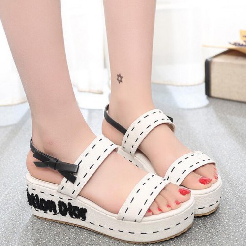 歐美2015春秋新款ALU同款厚底刺繡蝴蝶結松糕涼鞋牛仔布甜