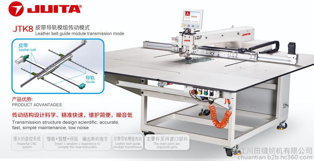 JUITA川田K系列智能模板機(jī)前所未有的降低了工人的熟練要求!對于生手工人不用經(jīng)過任何培訓(xùn)即可操作本機(jī)器,并高效生產(chǎn)出合格的產(chǎn)品!有智能點位及畫線功能! 在同傳統(tǒng)的縫紉機(jī)比較中,相比其他機(jī)型,有時候難度高的工序,要先掃粉再車線,(掃粉會造成污漬),工人手工車線會彎彎曲曲不標(biāo)準(zhǔn),但全自動縫紉機(jī)有點位及畫線功能有上下點號筆為下一道生產(chǎn)工序進(jìn)行加工前準(zhǔn)備,節(jié)省1個畫位工人。做出來的每個產(chǎn)品卻是標(biāo)準(zhǔn)做的;本機(jī)可免此工序,節(jié)省工人并環(huán)保污染!使效率提高到了極致!很大程度的提升產(chǎn)品品質(zhì)!由于使用程序化的控制,可以保證所有產(chǎn)品針距和縫紉走向等做到標(biāo)準(zhǔn)一致,并可輕松的實現(xiàn)特殊要求,如對于衣物的轉(zhuǎn)角處加密縫制,或?qū)τ械牟课贿M(jìn)行雙道線縫制等,只需在編制程序時加入就可一步到位,對于特殊工藝要求的產(chǎn)品生產(chǎn)更是得心應(yīng)手!