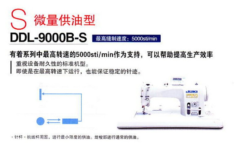 一直追求**高的縫制品質**高的生產效率**小的能耗**簡易的操作方式的JUKI,繼DDL-9000·DDL-9000A之后推出的**銳的單針平縫機。一直以追求產品真正的縫制品質為目標的JUKI平縫機的**先進機型的代表。