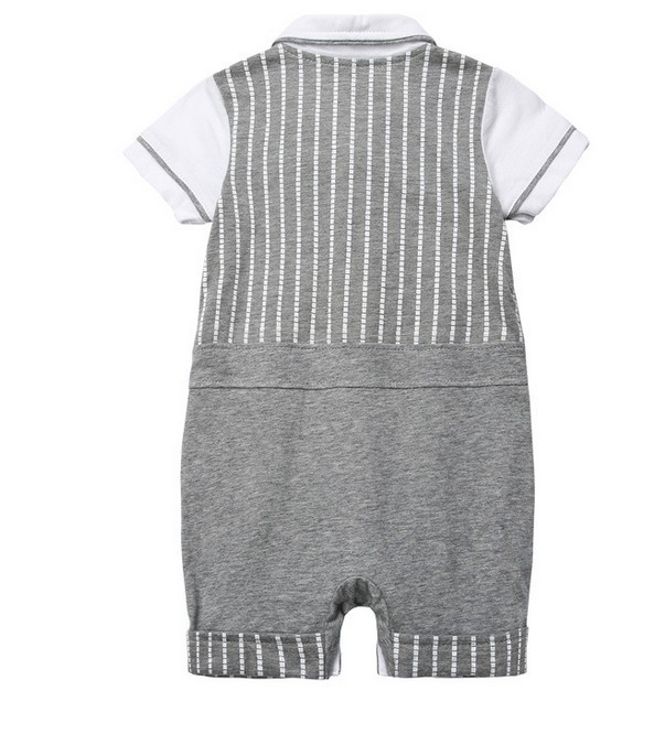 嬰兒夏天衣服嬰幼兒夏季連體衣男寶寶紳士短袖背心式連身衣爬服