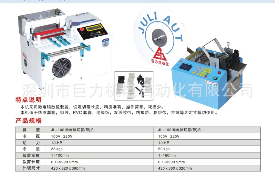 | 用途 | 熱縮管,熱收縮套管,排線,PVC套管,絕緣紙,雙面膠,粘扣帶,棉紗帶,拉鏈等之定寸裁切使用 |