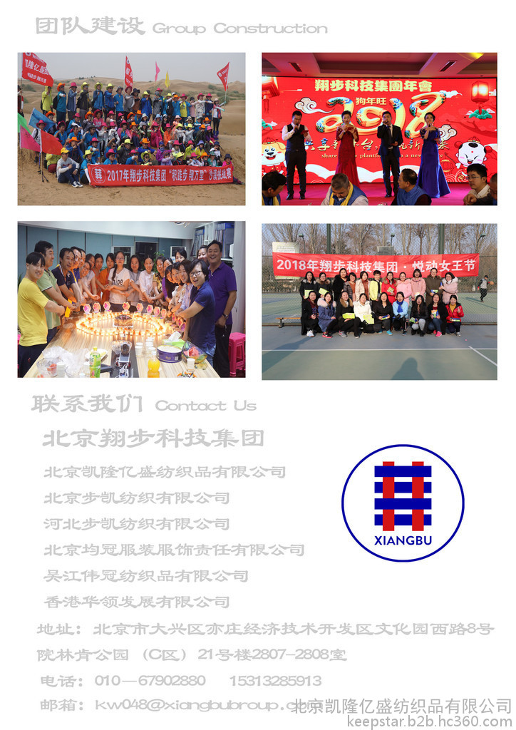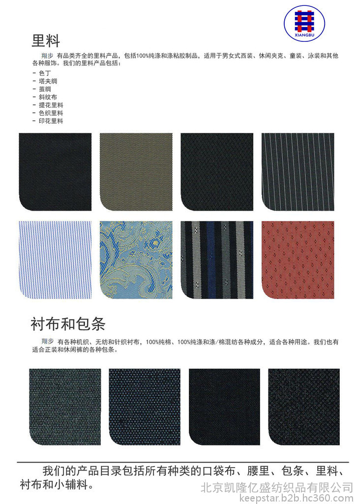 翔步前身始建于1989年,歷經近30年發展,擁有自主品牌“步凱”商標及圖形,成長至今已成為集設計研發、銷售、生產、貿易于一體的現代化綜合企業,是**大的口袋布、里料、腰里等紡織品的供應商之一。翔步生產制造產品涵蓋了口袋布,腰里,里料,腰襯,襯布和面料的主營類別,同時具備成衣加工能力。翔步在河北建有坯布織造、染整生產基地,專業生產各種坯布、口袋布、里料、腰里、腰襯